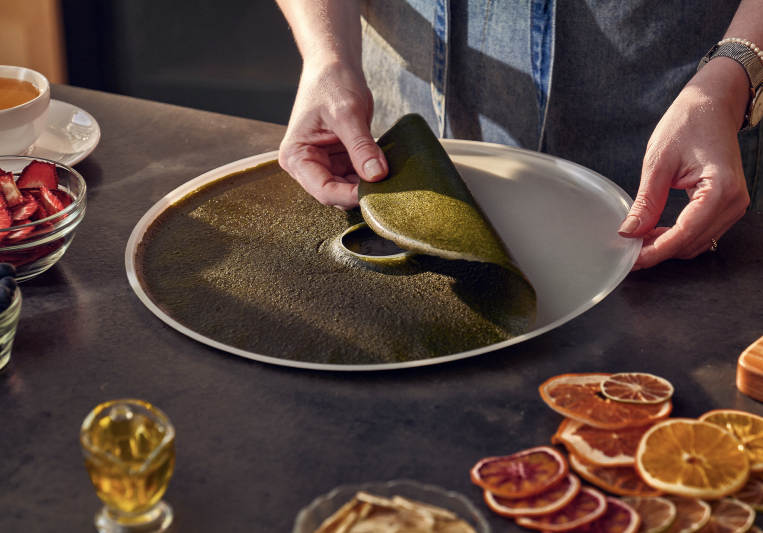 Он подходит не только для приготовления пастилы, но и для дегидрации соусов и пюре, которые можно хранить в виде порошка.