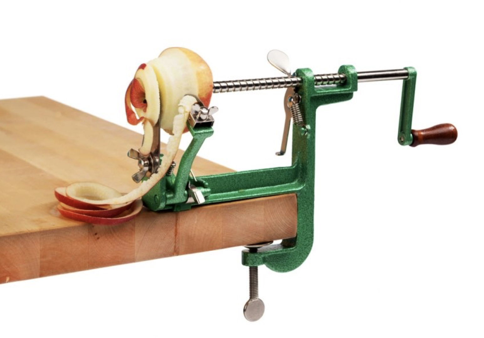 - Ezidri Apple Peeler одновременно очистит яблоко от кожуры и нарежет спиралью с равномерной толщиной витка
